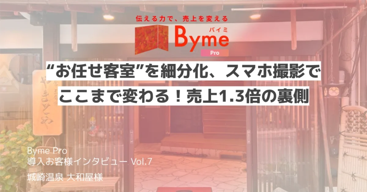 我々が提供する写真撮影アプリBymeは、キレイに写真が撮れることがゴールではありません。撮影が身近なものになることで顧客に対する情報量を圧倒的に改善し、レピュテーションや成約率にコミットします。